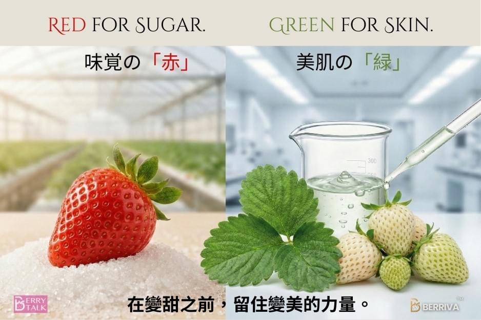 科學研究證實,草莓在特定的未熟階段(G2色階),其多酚與特殊修護成分的含量會達到最高峰。